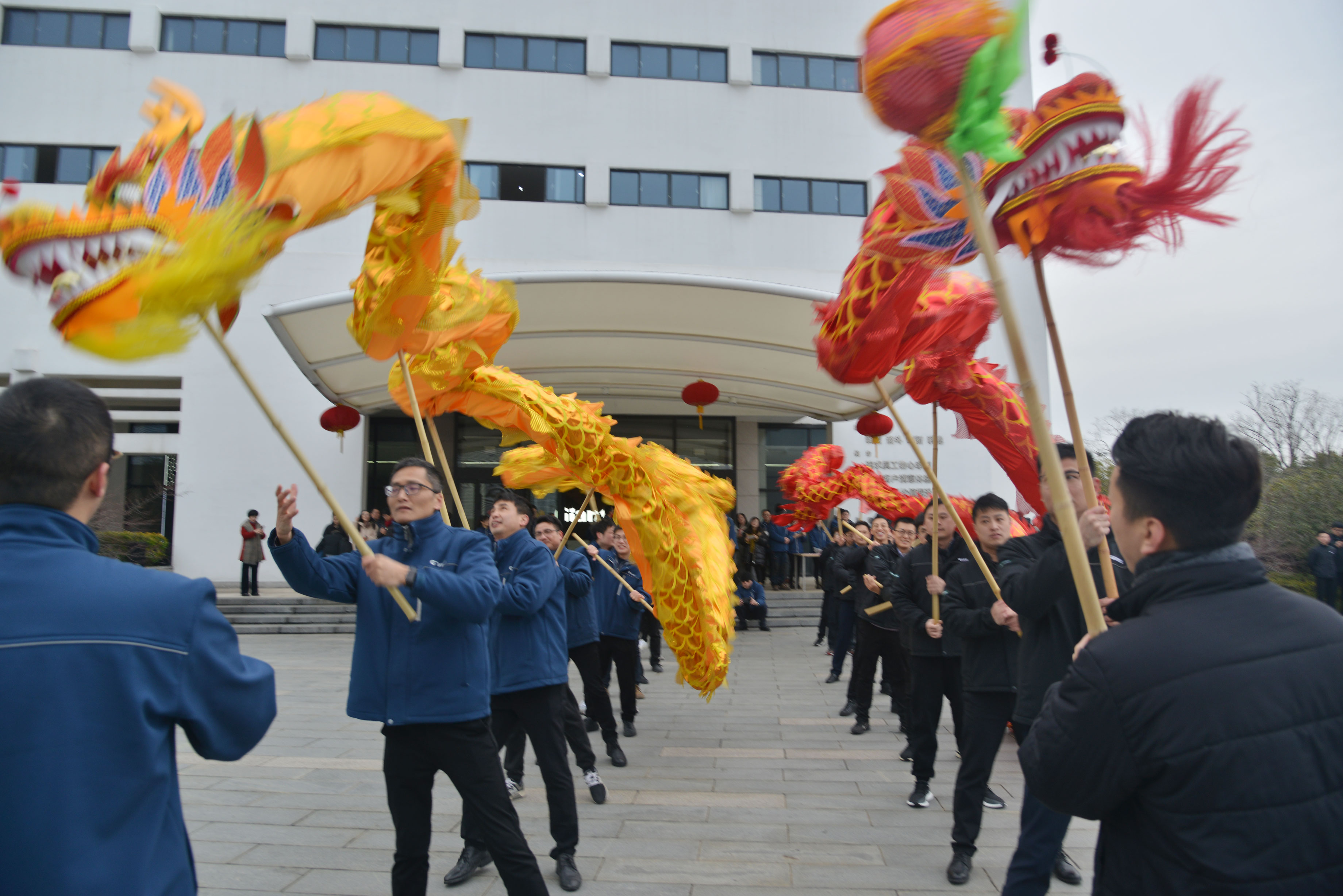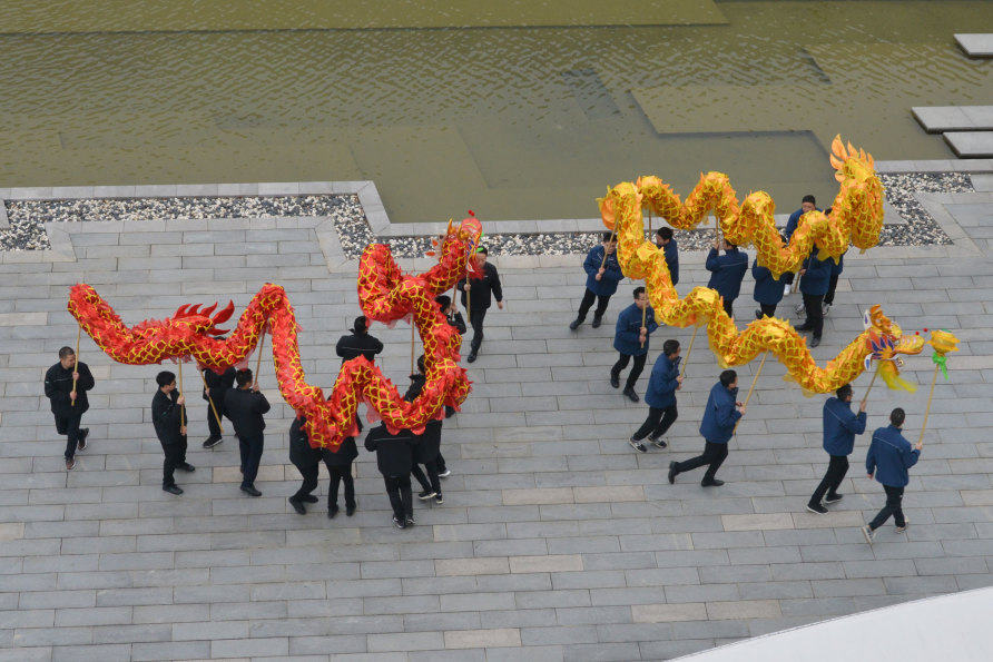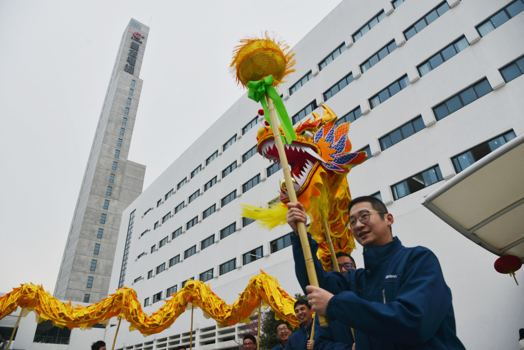 春寒料峭,擋不住熱情迸發(fā)的青春活力。來自巨人集團(tuán)各公司的青年員工,舞動兩條長龍,在激越的鑼鼓聲中凌空游弋、上下翻飛;一個(gè)個(gè)開工紅包傳遞到大家手中,帶來美好的新年祝愿,園區(qū)處處洋溢著歡聲笑語。